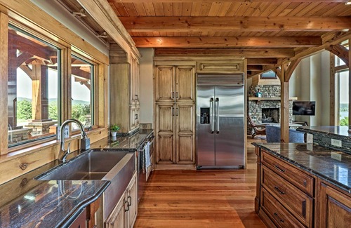 Find upscale family-friendly living indoors and out at this beautiful vacation rental! With uninterrupted 180-degree sunrise and sunset views over the water, this timber-frame, 5-bedroom, 5.5-bath retreat boasts stunning style. Choose between indoor and outdoor fireplaces, cook in the gourmet kitchen, or relax on the deck overlooking Sugar Loaf Mountain. Set between Fairfield Bay and Greers Ferry, the ideally located house is minutes from marinas, hiking, golf, UTV trails, dining, and shopping!