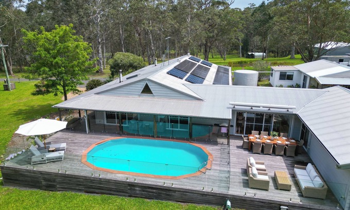 Outdoors, the property is a haven of relaxation and adventure. Indulge in poolside lounging or al fresco dining, explore the serene bush trails leading to a picturesque creek, or spark some friendly competition with a table tennis tournament. As night falls, gather around the fire pit for marshmallow roasting or host a memorable wood-fired pizza evening, perfect for all ages.