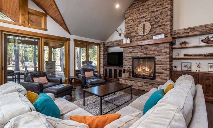 - Stunning Great Room: Enjoy the expansive great room with vaulted ceilings and gorgeous forest views, ideal for celebrations or relaxing moments together with loved ones.