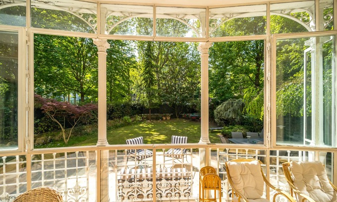 Located in a Haussmannian building of great standing at the border of Neuilly-sur-Seine and Paris 17th, this luxury flat of 220sqm will seduce you with the quietness of its 250sqm private garden and the luminosity of its old veranda.