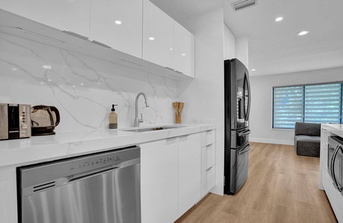 Designer remodeled Home is close to everything to meet your vacation needs. We take pride in offering you an immaculately clean stay. We are 15 minutes from Las Olas to enjoy the city's nightlife, Las Olas Beach, FLL airport, and the brand new Hard Rock Casino and Hard Rock Stadium. With a beautiful shared heated saltwater pool. (SHARED with next-door unit). Our goal is to give you the best vacation of your life in South Florida .3 Bedroom sleeps 8. Incudes Custom fire pit circle, artificial turf, custom lighting. EV/TESLA chargers 2 mi away.