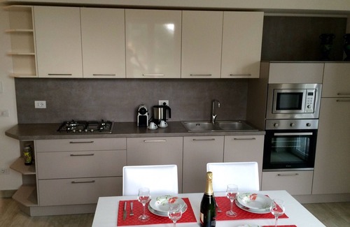 The apartment is on the ground floor. It has a living room with a new, fully equipped kitchen that opens up to the lake where you can enjoy a great breakfast or a romantic sunset dinner.