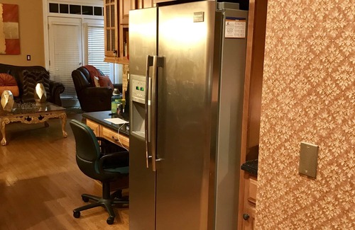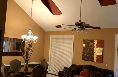 Beautiful 4 bedrooms 2 1/2 baths in quite, safe subdivision, Regency Pointe; Located in the heart of Atlanta. Home has 2 car garage with driveway parking spaces and more visitors’ parking available if needed. Easy Access to everything, Minutes from all interstates including 85, 285 and 20. Only 9 miles from Atlanta Hartsfield Airport and 9 miles to Downtown Mercedes Benz Stadium. Most importantly, Marta’s blue and green lines less than a mile away, provide direct transportation to and from the stadium. Home will sleep 12 comfortably. This is a gated community with a pool, clubhouse and fitness center. The master bedroom is located on the lower level floor. It has a king size bed, marble floors with a wet bar stocked with wine and separate sitting area, fit for a King! Bathroom has marble floors and walls, chandelier, jacuzzi tub with separate shower and toilet. The 1st Guest bedroom called the Hotel Suite has 2 queen beds, 2nd Guest bedroom has king bed, 3rd Guest bedroom has king bed and Loft bedroom has king bed. Our Guest bathroom upstairs comes with a Rain Shower with slate floors and walls. There’s a Sleeper Chaise upstairs in the hallway that’s too comfortable to leave. There’s a Surround System built throughout the house with tv’s in 3 bedrooms. The Living room area has a tv with a streaming media box for you Netflix fans. A beautiful gas fireplace to keep you warm while looking up out at the skylights above. The Dining room table will seat 4 along with a bar that seats 4 as well. We have a Laundry room equipped with full Washer and Dryer with separate ironing room. Kitchen has stainless steel appliances with dishwasher, all utensils coffee and tea maker included and more. Cable and WiFi Free! So come Super Bowl fans and have the time of your life!