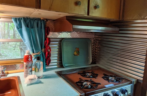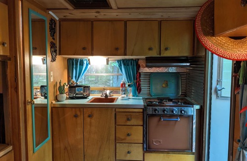 NATURE ELEVATED. ONE SEAMLESS STAY. EVERY RESORT AMENITY INCLUDED IN RATE. ONE PRICE = EVERYTHING. NO SURPRISE FEES--JUST GOOD TIMES. | Our 1961 "Fiesta & Siesta" Vintage Camper #7 at POV Lake Resort w/60s fiesta decor. Sleeps 2 inside, & a perfect couples or on-your-own getaway. Stunning Northwoods view & short walk to lake w/sandy beach. On site hiking trails, paddleboards, kayaks, canoes, game room, general store & stargazing. Boat rental & romance packages available. No pets or hookups.