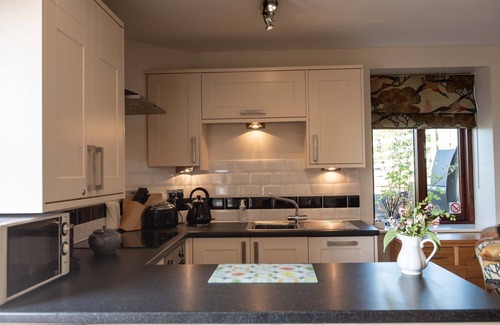 The cottage has gas underfloor heating throughout and comprises: Open plan lounge dining area with wood burning stove, 32" TV with Blueray/DVD player. Kitchen, with gas hob, electric oven, microwave, dishwasher, washer/dryer and fridge/freezer.