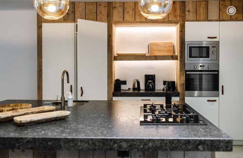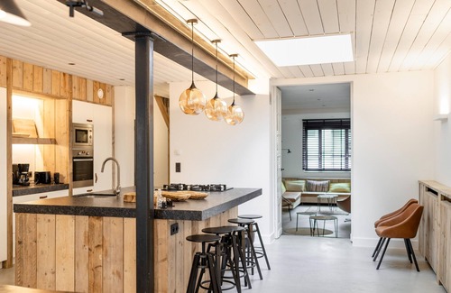 Atmospheric open kitchen with large kitchen island. Equipped with oven, microwave, gas stove, fridge / freezer, dishwasher, Senseo coffee maker, crockery, etc ...