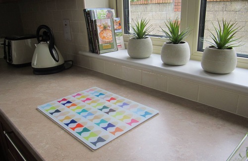 The Sitting/Living Room has a large comfortable reclining settee with scatter cushions, coffee table, side table and rug. There is a large flat screen TV/DVD player and a beautiful fireplace in which to relax and unwind. There is free wi-fi throughout the house.
