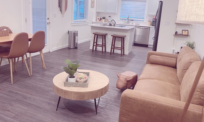 Luxury experience in this 2 story home, with large theater upstairs 3 bedrooms and sleeping sofa. 3 minutes from water park, 5 from sand dunes and lake, 2 from downtown. Driveway parking, and fully stocked kitchen. Table and bar seating, Porch swings and a BBQ, every inch of this home was made to create a peaceful and relaxing getaway. Enjoy a small music corner to help pass your time, and a fully loaded office. Kids will love the play room full of toys bikes and all baby amenities as well.