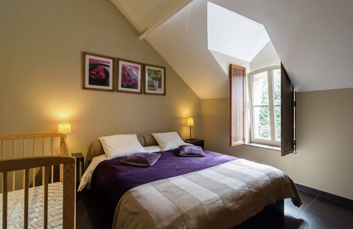 The holiday home has central heating for comfort indoors and an outdoor fireplace too. You can enjoy lingering with a bottle of wine in the afternoons and organize barbecue evenings on the private furnished terrace. Sitting by the pond, you can admire nature or read in silence. For babies, cot and high chair are provided for free, on request. Parking is available.