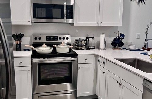 Each bedroom offers plush comfort, with a king-sized bed in the master and queen and full beds in the other rooms. An extra queen size air bed and bassinet for children is also available. All have ample closet space. Whether staying in or going out, this home has everything you need for a memorable and enjoyable stay!