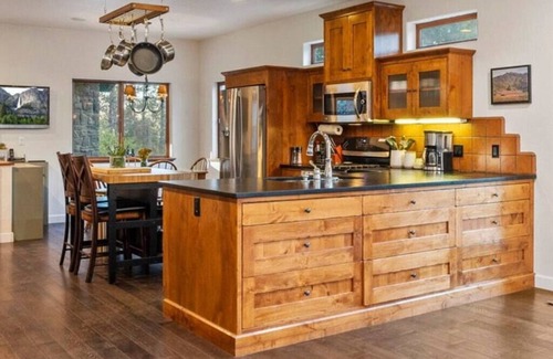 *Gourmet Kitchen:🥞 Soapstone countertops, stainless steel appliances, and space for 10-14 people to gather, because one thing is clear: you’re going to eat well here. Open up to the outdoor patio for granite dining, a BBQ grill, and endless possibilities for “accidentally” burning the veggies.