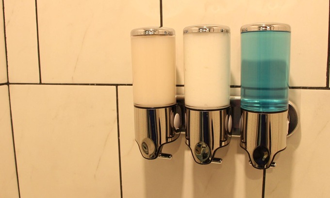 Cleansing shampoo, conditioner and body wash are available at the push of a button with modern built-in dispensers, located in both showers.