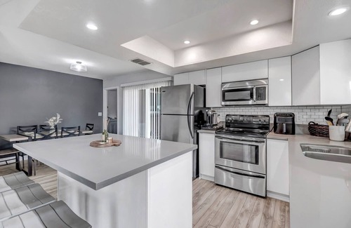 Enjoy a relaxing getaway in this modern Scottsdale home, featuring a private heated pool and beautifully landscaped backyard. With three spacious bedrooms, an open living area, and a fully equipped kitchen with a coffee and cocktail bar, this home is perfect for families and groups. Unwind by the firepit, grill outdoors, or explore nearby Troon Golf and top hiking trails.