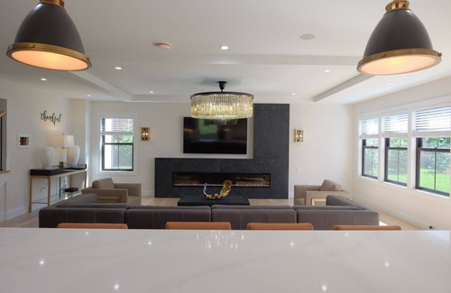 Our brand-new home provides 9 spacious BR with 8.5 BA. One luxurious BR suite on the MAIN level. Dining & breakfast room. Entertainment floor comes with PS5 game station; Foosball table; 8' pool table; Shuffleboard; Air hockey table. Backyard with grilling area. Electric car chargers (1 Tesla charger and 1 Universal charger). 3 laundry rooms.