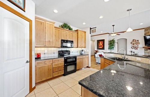 This beautiful Luxury 'single level' home is approx. 2500 sq ft (one bedroom is in the bonus room above the garage). Completely furnished with everything including a fully stocked kitchen, yard service, and pool service.