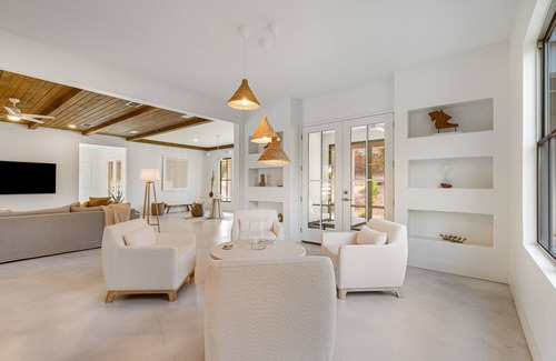 A truly revitalizing trip awaits you at Serenity Now. Overlooking a sandy shoreline, your days spent at Serenity Now are best enjoyed playing on the private beach, dipping into the gorgeous pool, and sunbathing under the vast blue sky.