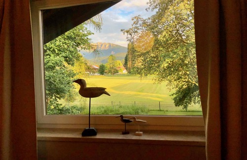 Designer house in Benediktbeuern. A detached house on the outskirts of Benediktbeuern. 6 guest rooms, large kitchen and large living room, 2 bathrooms, 2 toilets, large garden - with a unique view on the Benediktenwand.