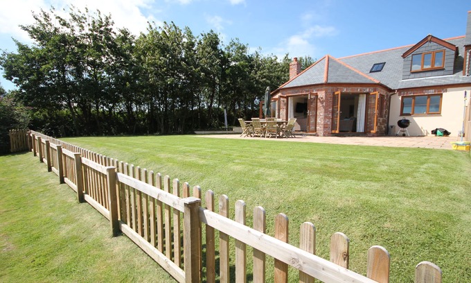 The accommodation is light and airy and comprises 4 large bedrooms with 2 en-suites and 1 family bathroom; an open-plan airy kitchen/lounge/dining area which is extremely well-equipped with large comfy sofas, a flat-screen HD TV and all mod cons. There is a south-facing garden which is fully secure, with a weber charcoal bbq and an outside hot and cold surfers' shower. The patio offers a great place to drink your morning coffee from our Nespresso machine! There is also direct access from the garden into a large field where children can play.