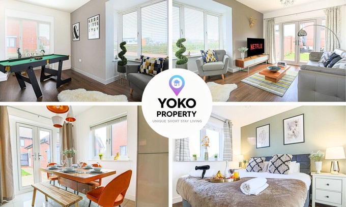 Luxury House Sleeps 10 PoolTable FreeParking is located in Milton Keynes. Luxury House Sleeps 10 PoolTable FreeParking provides accommodation, featuring Wellness Facilities, Fireplace/Heating, Guest Services, among other amenities. This House features Wellness Facilities, Fireplace/Heating, Guest Services, to make your stay a comfortable one.