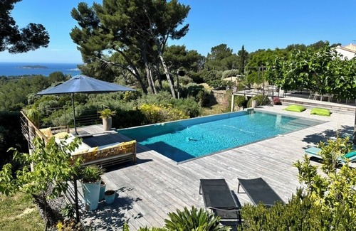 View on La Ciotat Bay, quiet and surrounded by nature. Luxury house, fully rebuilt in 2010. A wood terrace of 250M2, a garden of 4000m2, private pool 5mX11m, petanque private ... 1km from the village of Ceyreste and 1.5 km from the sandy beaches of La Ciotat. Golf 15 mins. Cassis 15 minutes ...Ideally located