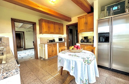 Relax in this beautiful large house with great views of the surrounding countryside. It has a heated swimming pool, half indoor and half outdoor, overlooking the garden, and a relaxation area with a sauna and solarium. There is also a pool table with a view, a barbecue and a large garden with a swing and table tennis table.