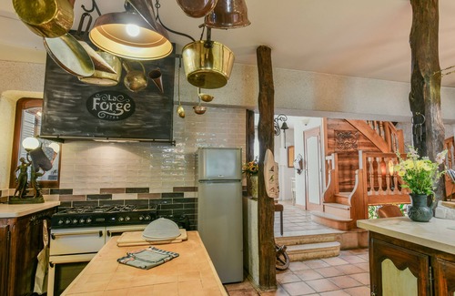 Village house atop the rock of Roquecor with sublime views over the valley, right next to a monumental tower. Roquecor has a medieval centre built around 13th-century castles, with small streets and many terraces. This former forge has been fully restored and is not suitable for children under 12. Under the arch is now a partly indoor heated swimming pool (availability depending on the weather), there is a beautiful garden and several seating areas