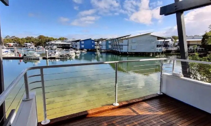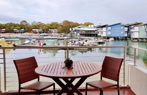 Wake up in paradise and enjoy the relaxing views of the Marina on the deck while you sip your coffee waiting for the locals to come visit, Wallabies, Ducks, Curlews and various fish which swim right up to the deck at high tide, some big enough to eat!