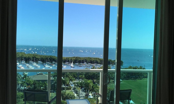 Enjoy a luxury studio with private balcony in the heart of Coconut Grove overlooking the Coconut Grove Sailboat Club and Biscayne Bay. "It’s the greatest view in all of Miami.”
