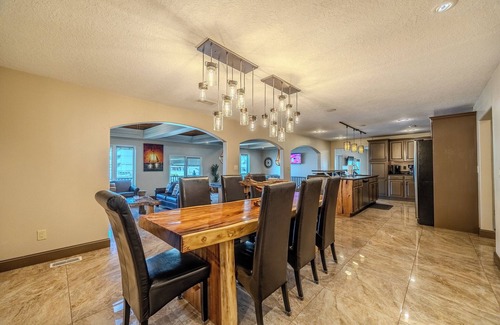 - Entertaining Amenities: The contemporary kitchen and step-up dining area feature modern appliances and a rustic live edge wood table, facilitating easy meal prep and gatherings.