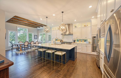 SERENITY COVE, perfect for the multi-family getaway vacation, is newly built (finished Nov. 2022) luxury 7 BR / 7.5 Ba. masterfully designed LAKEFRONT home (<100 steps to lake/beach). Peaceful and quiet cove with open water views on Public side of Lake Anna. Non-motorized watercraft included for guests use. Bring your own watercraft and dock it at our boathouse. No summer algae blooms here. Starlink High Speed Wifi/internet with YouTubeTV, Netflix and SONOS with 3 audio zones included. Located very close to Pleasant's Landing Marina (2 min by boat; 4 min by car). Tons of activities available for all ages. The pictures don't even begin to capture how awesome the property is!