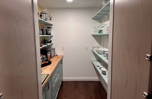 Hidden butler’s pantry with a coffee bar, snack station, and plenty of extra prep space