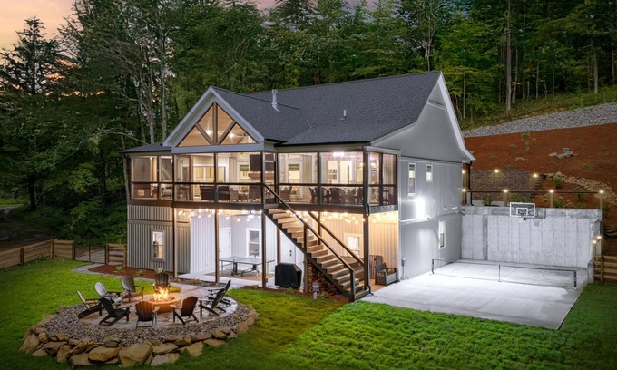 Relax on the huge screened in deck with a double-sided indoor/ outdoor fireplace, soak in the private hot tub or relax by the fire pit. Inside unwind with TVs in every room, the basement wet bar and a full arcade system. Outdoors shoot hoops, play ping pong, pickle ball or enjoy the fenced in backyard. Whether you’re here for adventure or relaxation this home has everything you need for a mi memorable stay with family and friends.