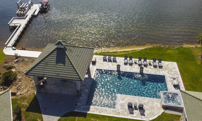 - Beautiful Lakehouse W/stunning sunsets private dock, pool, pool table sleeps 12