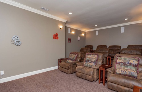 But that's just the beginning! Descend to the lower level and discover a world of entertainment and relaxation. Here, you'll find a fully equipped bar, a full kitchen, a comfortable family room, and a theater room with tiered stadium seating, perfect for movie nights. The lower level also features two full baths, a card room, and three additional bedrooms, including two king bedrooms and a bunk room with a queen.