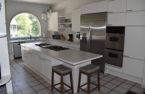 The home offers a full kitchen on each floor, making it easy to grab a snack for a day out on the lake or prepare full meals without much effort. Each kitchen is equipped with full amenities and is great for groups and family gatherings with the kids.