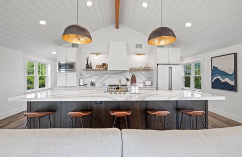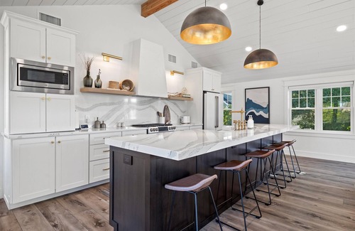 - Gourmet Kitchen:The heart of the home, designed for entertaining with high-end finishes, modern appliances, a large dining table and island with plenty of seating. Fully stocked with cooking utensils and serving ware.