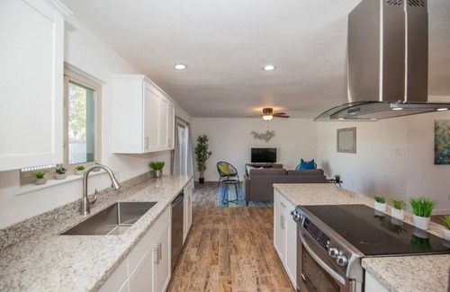 You will enjoy your stay at this fully furnished LUXURY rental in the center of Yuma. It has 4 bedrooms, 2 bathrooms, and a 5th bedroom/game room that can sleep up to 10 people. The home has just been completely remodeled with high end finishes including granite counter tops and stainless steel appliances. Relax next to the pool or on the large patio while you BBQ. This home is just a short drive away from Mexico, Colorado River, sand dunes, and Yuma Proving Grounds.