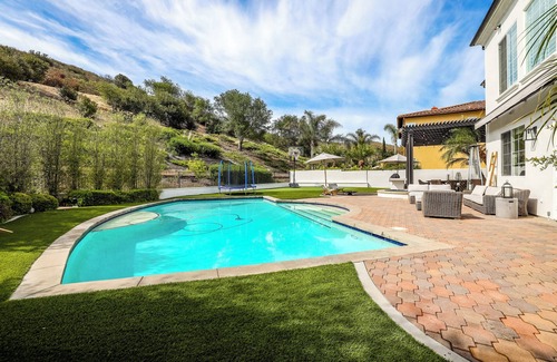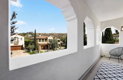 Beautiful 4-bed, 4.5-bath coastal California villa located in a luxury gated community less than a mile from the Pacific. Perfectly situated on a 12,000 square foot private lot with cool ocean breezes featuring a huge pool, spa, bbq, outdoor shower, basketball court, dining and lounging areas and more. Every bedroom has lovely views, and some have private balconies. The property backs onto a gorgeous nature preserve with miles of hiking and biking trails with ocean views. Inside the home has been fully renovated with wide-plank French oak flooring and beams, spa-like master bath with huge soaking tub, 2 fireplaces, Peloton bike, and much, much more. There are 3 dining areas that seat 24 people comfortably and the kitchen is fully stocked with fun extras like a fondue pot, pizza press, ice cream maker, air fryer and high-end espresso maker. The home comes complete with luxury towels and linens, bikes, surfboards and every amenity you need to make your stay comfortable. The villa is located in a very quiet neighborhood within minutes of Southern California's best beaches, restaurants and shops and just a short drive from major amusement parks, museums, mountain lakes and other attractions.