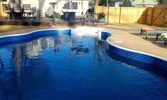 Yes, this East Point house has a swimming pool. Check the Facility Overview section for details about the pool and other available facilities.