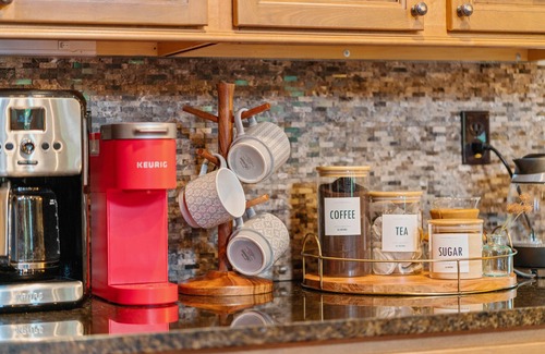 Gourmet Kitchen: You're equipped with top-of-the-line appliances and a kitchen stocked with everything from cooking tools to kid-safe dishes. Amenities include a dishwasher, toaster, Keurig and French Press coffee makers, Crock-Pot, microwave, and an Italian blender, ensuring you have everything you need for culinary exploration. We also provide spices, salt, pepper, olive oil, and everything necessary to prepare a large family dinner.