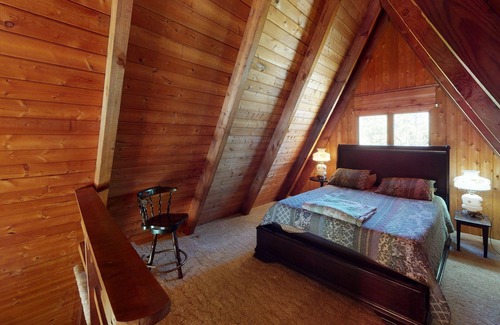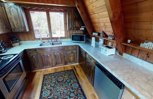 When it’s time to unwind, gather around the grand dining table for a shared meal or head to the spacious living room to relax on the large sectional and watch movies on the big flat-screen TV. Pop some buttery popcorn and get ready for a cozy movie night. Down in the basement, the entertainment options are endless: a second living room with a large flat-screen TV, a game room featuring a pool table and bar, and easy access to the outdoor hot tub and fire pit. There's even a chance to explore the property in a unique way—turn off the lights and dive into a playful game of hide-and-seek throughout the many rooms of the lodge.
