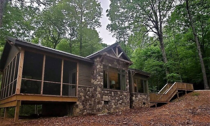 If you are wanting to get away from it all, this is the place for you. Whether it be a romantic weekend, horseback riding, family getaway or hunting/hiking adventure, you can find it here at 3 Oaks Cabins. Come enjoy nature while staying at "The Lodge". The Lodge is a two bedroom and one bath with 640 sq. feet of living space, large screened in porch with fire pit. Just the right spot to enjoy some smores in the woods.