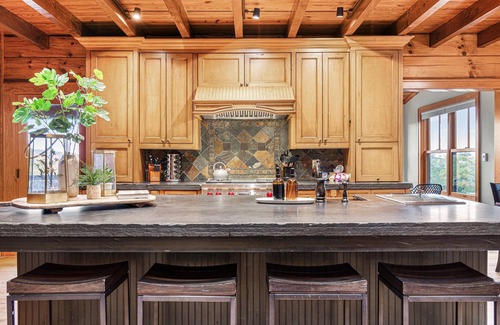 KITCHEN - The kitchen in the main house is fully stocked with everything Grandma needs to make Thanksgiving dinner and then some, from the Wolf stove to the custom refrigerator and Coffee Bar.
