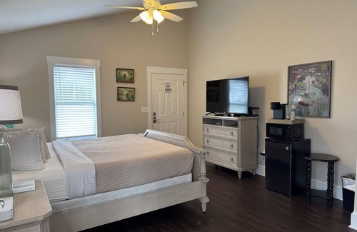 - Luxury Lodging, Lakefront View, King Bed w/Private Bath, Private Patio, Full Efficiency Kitchen. Pet Friendly