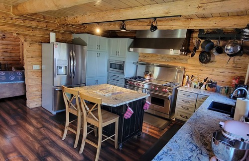 Your stay at the Luxury Log Home features an array of premium amenities designed to make your wedding experience truly unforgettable. With vaulted ceilings, multiple living spaces, and a stunning south-facing sunroom, there's plenty of room for both your wedding party and guests to relax and revel in the celebrations. The fully equipped kitchen, complete with a Wolf stove and two convection ovens, makes catering a breeze, while the expansive deck with dining seating allows you to host al fresco receptions against a backdrop of stunning mountain vistas. The property comfortably sleeps six couples, ensuring everyone can stay together in comfort, with options for additional sleeping arrangements in the guest house, which boasts its own game room and spa-style bathrooms.