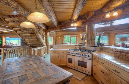 The home itself is perched on a hilltop vantage point overlooking a large mountain meadow valley that is teaming with wildlife throughout all seasons. It is common to see elk, deer, wild turkey, fox, many varieties of birds including hawks and eagles, and even the occasional black bear from the comfort of many outdoor and indoor vantage points.