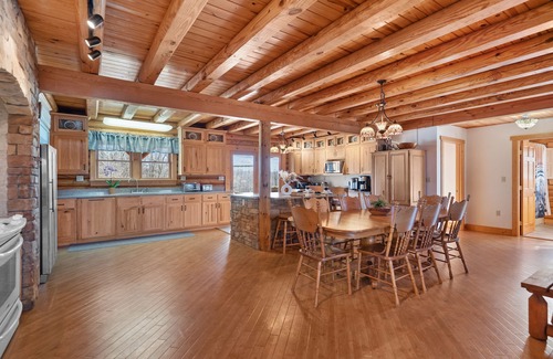 The log house has four full bathrooms and a convenient half bath accessible from the living area. All are stocked with essential toiletries and clean towels to ensure a hassle-free stay.