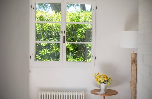 The interiors are elegant throughout both the dependences and the main villa. The decor perfectly combines original features with modern, contemporary design. Guests will be struck by the beauty of the wooden doors. Chandeliers stand out against the neutral tones of the furnishings.