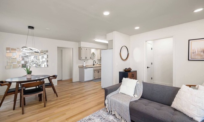 Guests have full private access to the entire home, including a private one-car garage. The garage remote will be conveniently placed in the kitchen upon your arrival. You’re also welcome to enjoy the fenced backyard, which is shared with the neighboring unit. The garage and unit, however, is for your exclusive use.