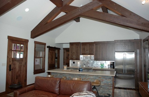The Luxury Mountain Cabin, just 100 yards from the Homeowners Ski Trail, offers an idyllic setting for wedding stays. This extravagant guest home combines comfort and luxury, making it a perfect retreat for couples and their families.